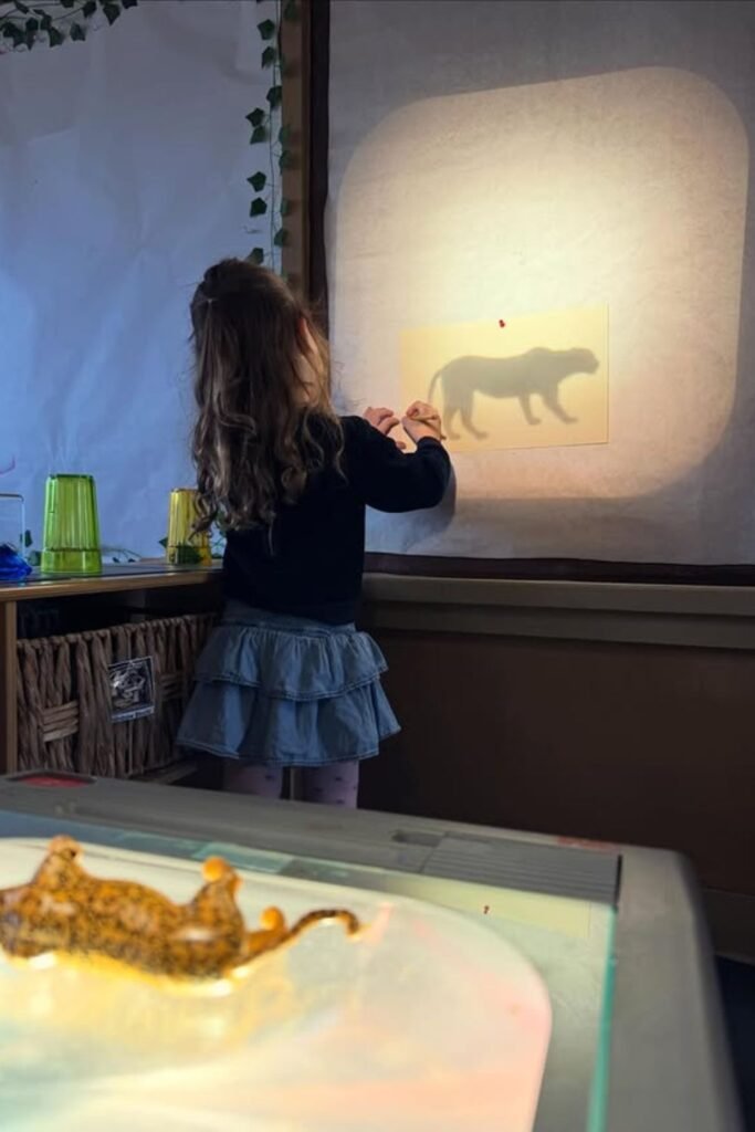 Light on a wall turns imagination on fast. A lamp, white paper, and a small toy create moving shapes kids can change with tiny hand shifts.