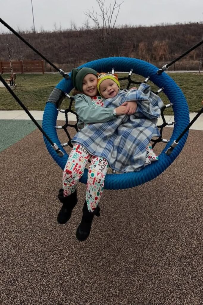 Gentle motion does more than entertain. A wide net swing lets siblings sit close, rock together, and feel secure at the same time.
