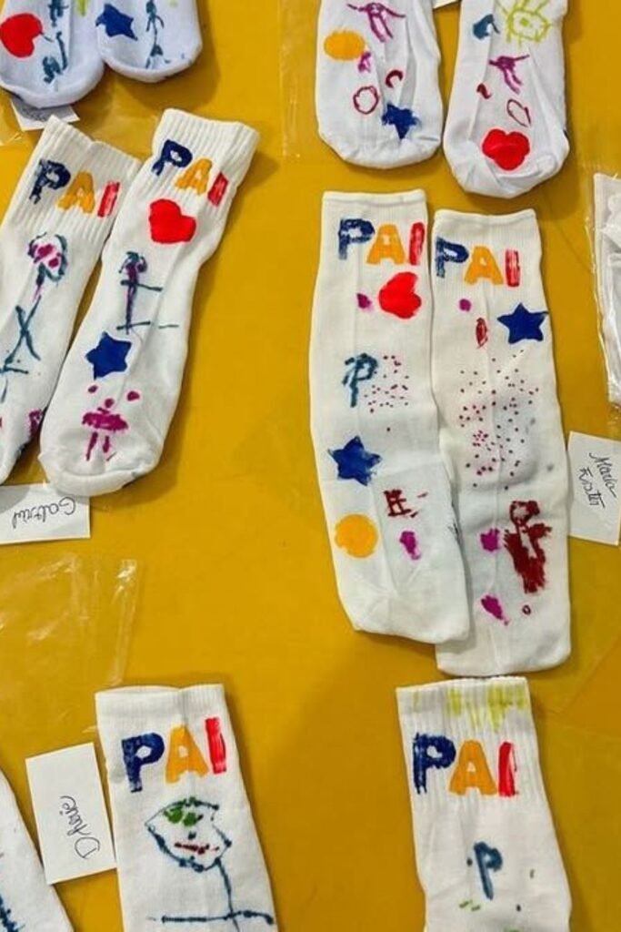 Plain white socks become instant keepsakes once everyone gets their hands on fabric markers and paint.