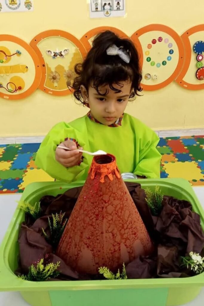 Nothing grabs attention faster than a mini explosion on the table. Mix baking soda inside a small bottle or cone-shaped model.