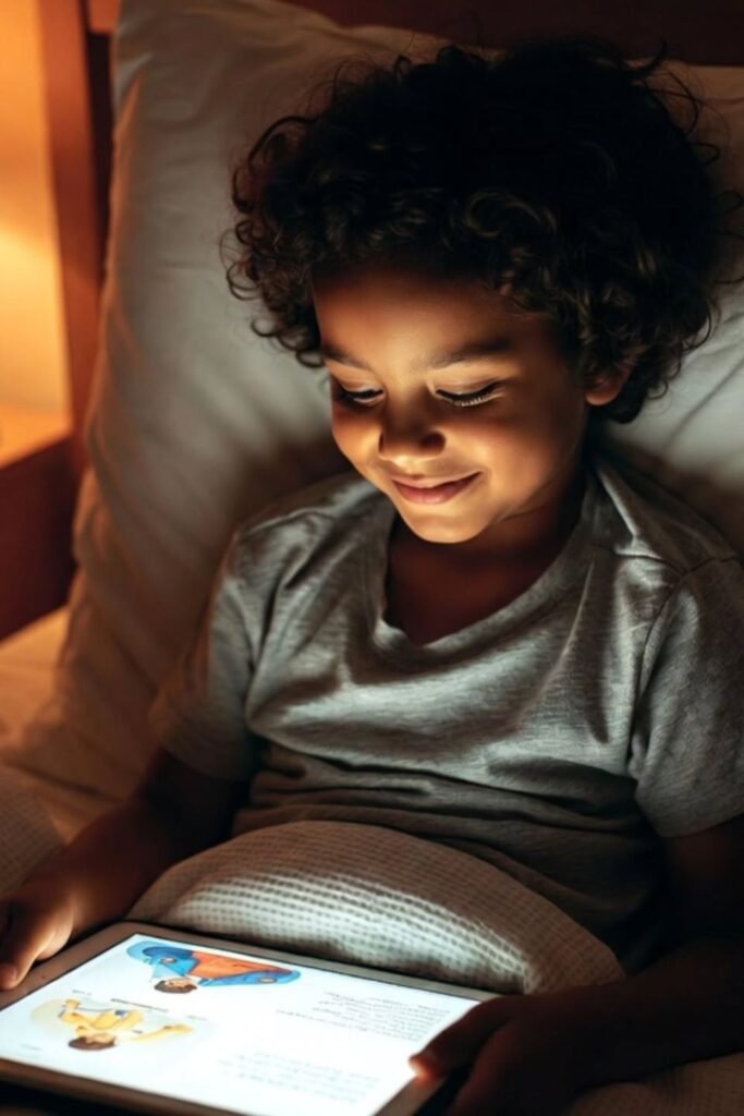 Soft lighting changes everything. Lower the lamps, gather everyone under blankets, and open a favorite book or story app.