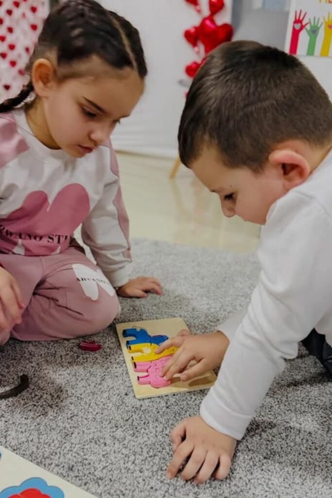 Little hands love a challenge that feels like a game, not homework. Spread out wooden shape boards or simple matching puzzles on the floor and let kids figure them out side.