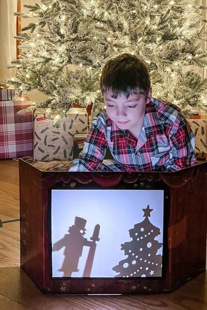 Dim the lights and suddenly the room feels like a stage. Grab a large cardboard box, cut out a window, tape white paper across the opening, and place a lamp or flashlight.