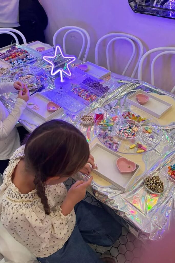 Nothing brings kids together faster than sitting around a table covered in colorful beads and stretchy string.