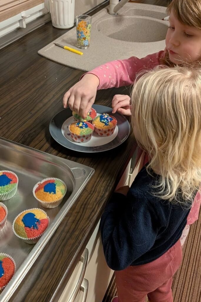 Hand over frosting and sprinkles and suddenly the kitchen turns into a mini bakery. Bake simple vanilla cupcakes ahead of time so the hard part is done.