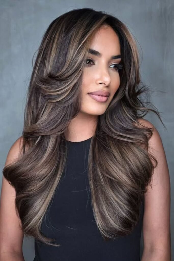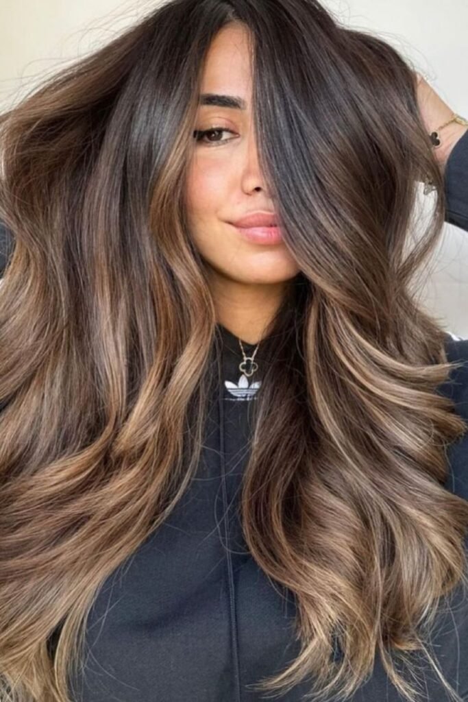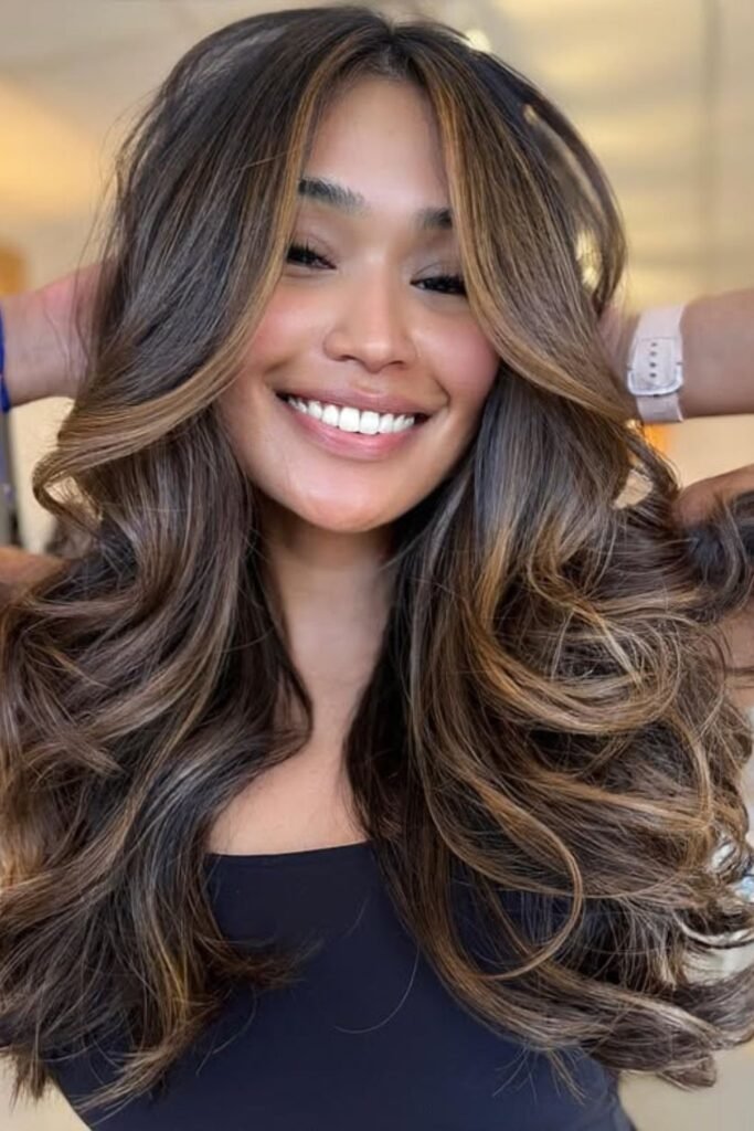 This style is perfect for light to medium brunettes who want to be brighter without going blonde.