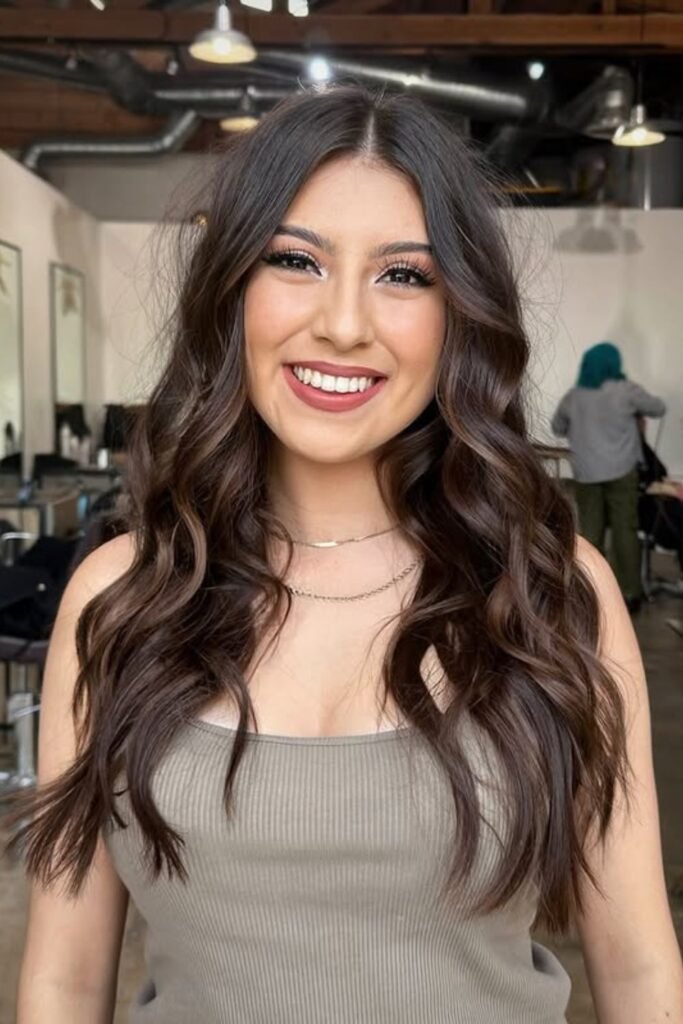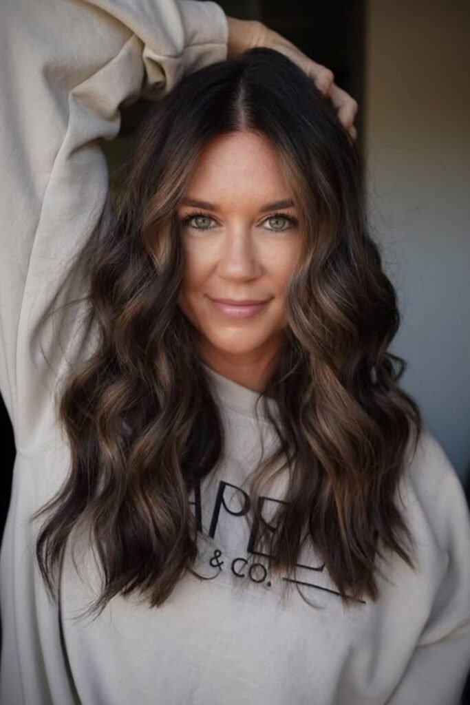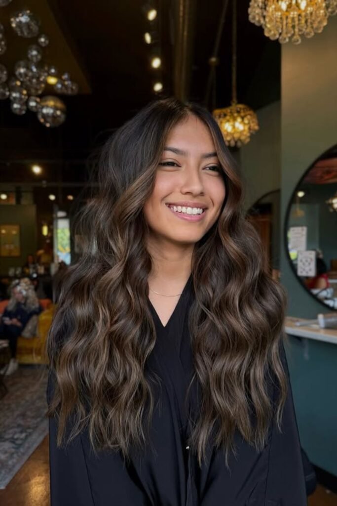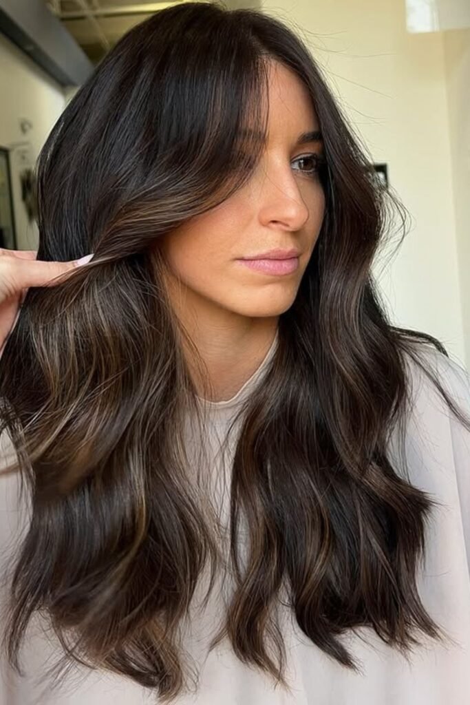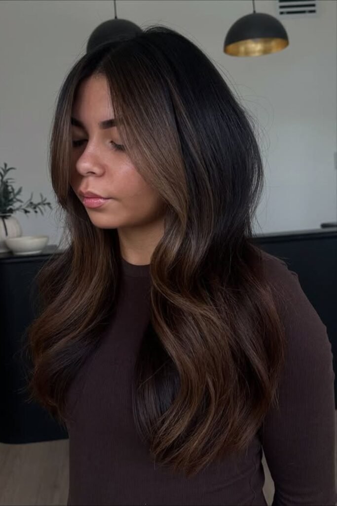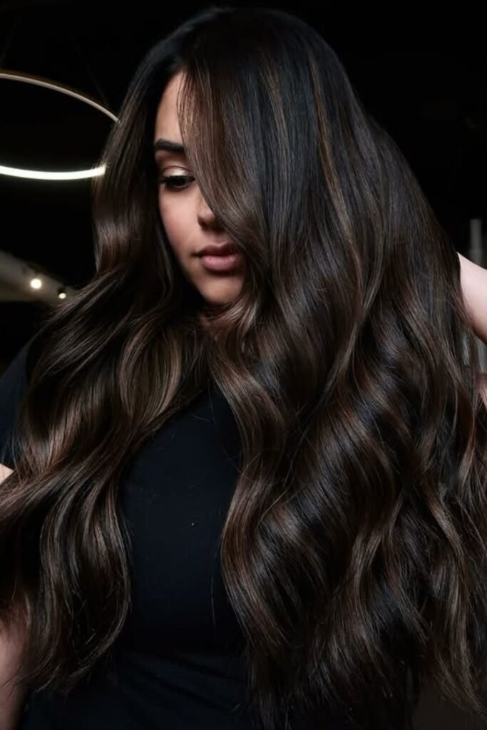 Subtle espresso highlights ripple through the dark base, creating that glossy “rich brunette” effect everyone wants.