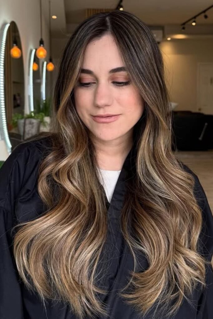 Warm brunette roots melt into soft bronde ends, creating a natural sun-touched transition that flatters nearly every skin tone.