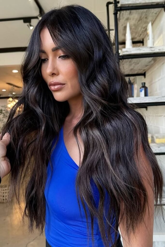 This color looks great on long, layered cuts because the cold reflection makes each wave stand out.