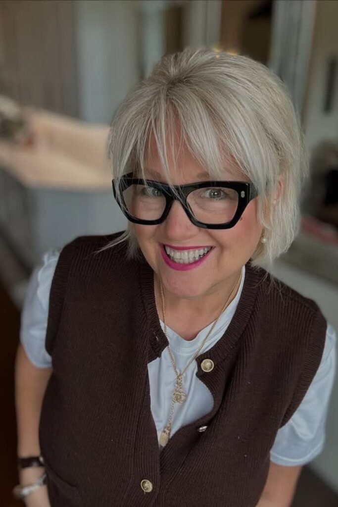 Light layers around the face make this bob a smart choice when you want softness that works well with glasses.