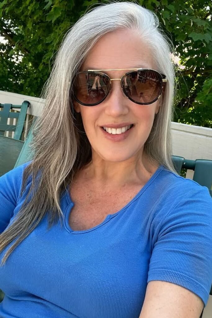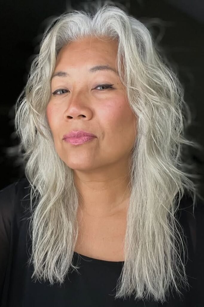 The light layers keep the length from pulling down the sides and help the gray merge in softly at the ends.