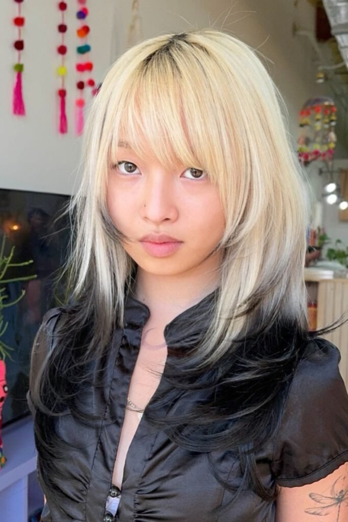 Light layering works well here because the shag cut breaks up weight and lets the bangs sit naturally without much styling.