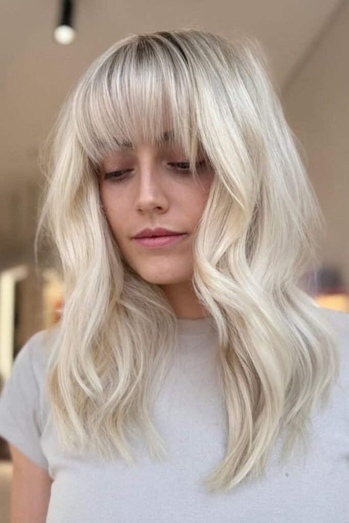 Loose waves paired with wispy bangs give you a style that feels effortless but still frames your face in a flattering way.