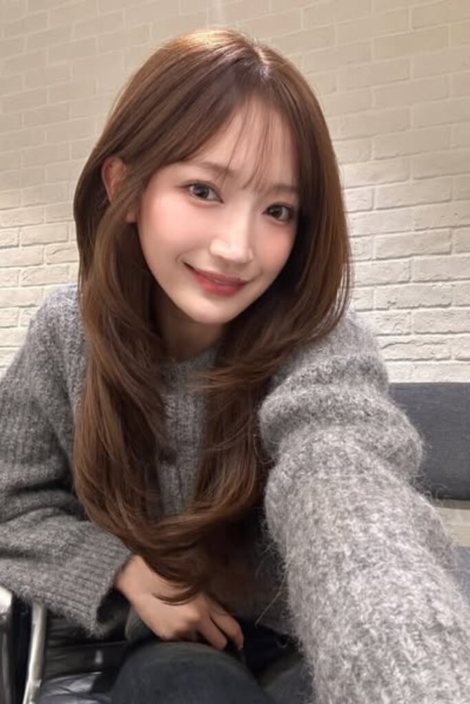 The curtain fringe blends into the cheek layers, which keeps the front light and open.