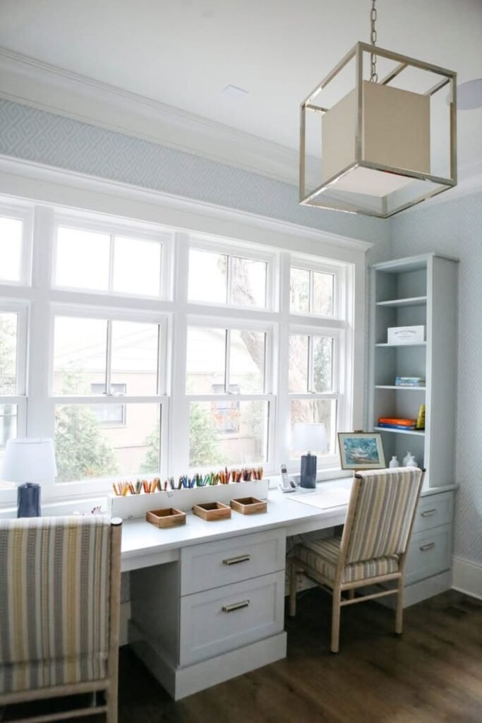 Daylight does half the work here by keeping kids focused without extra effort. A long desk under the window gives enough room for homework, drawing, or crafts.