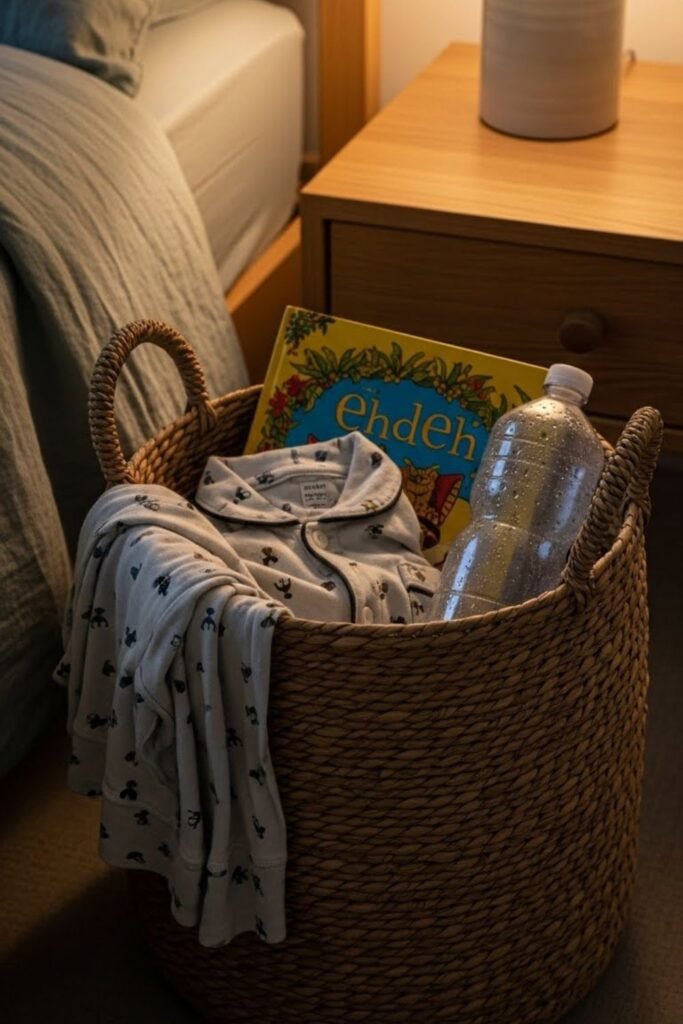 Even tidy rooms fall apart at night. Pajamas, books, cups and toys pile up by morning. A nighttime drop zone fixes this.