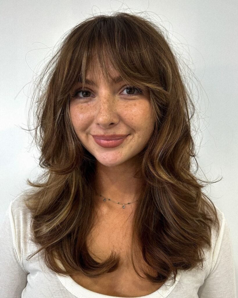 36. Soft Layered Shag with Wispy Bangs