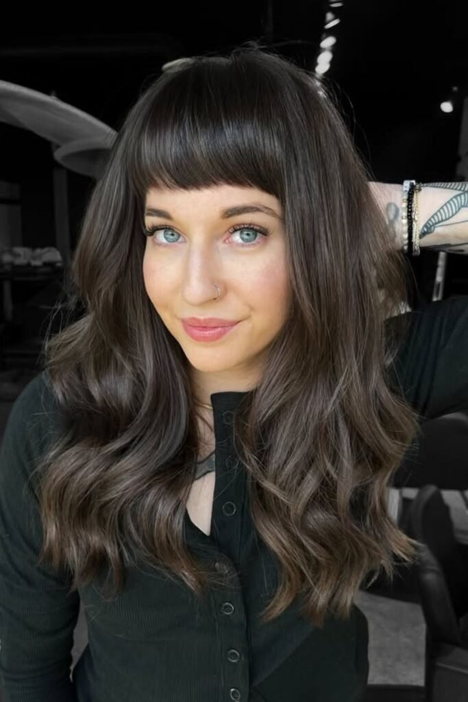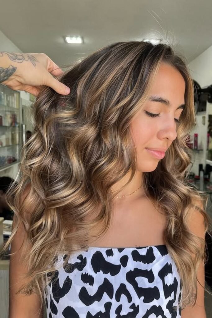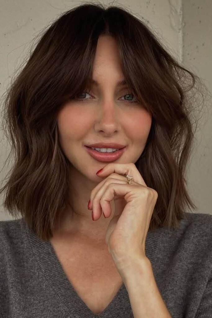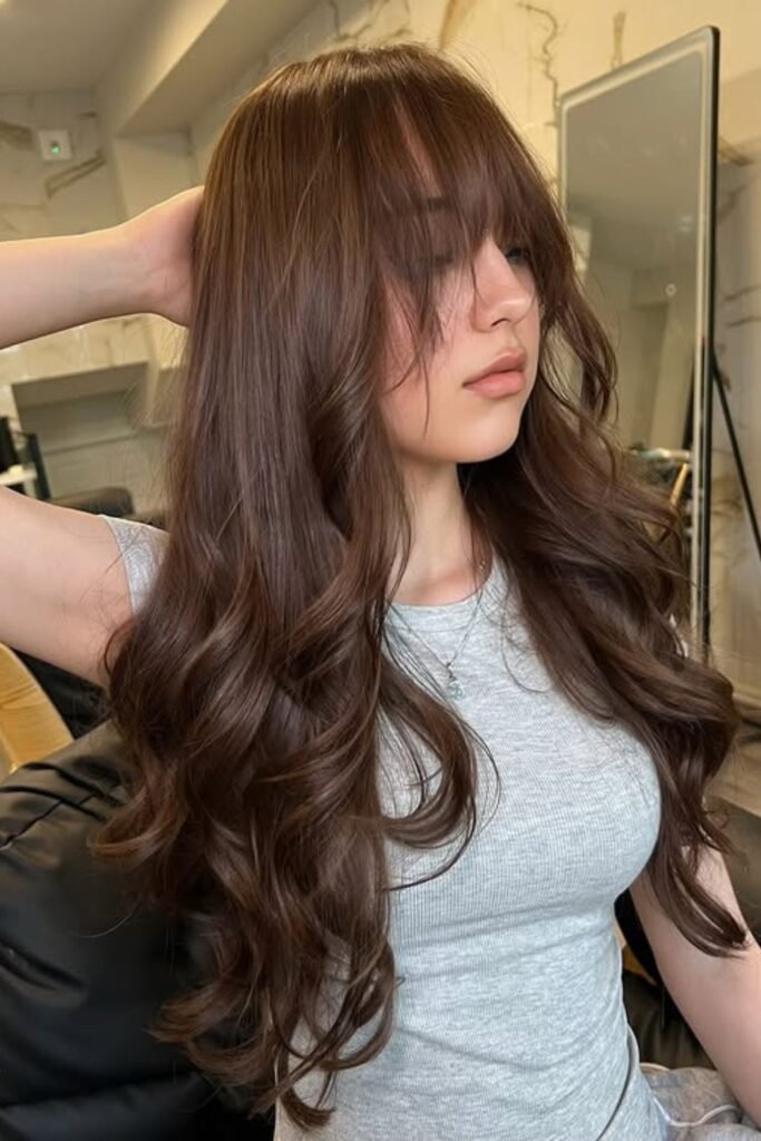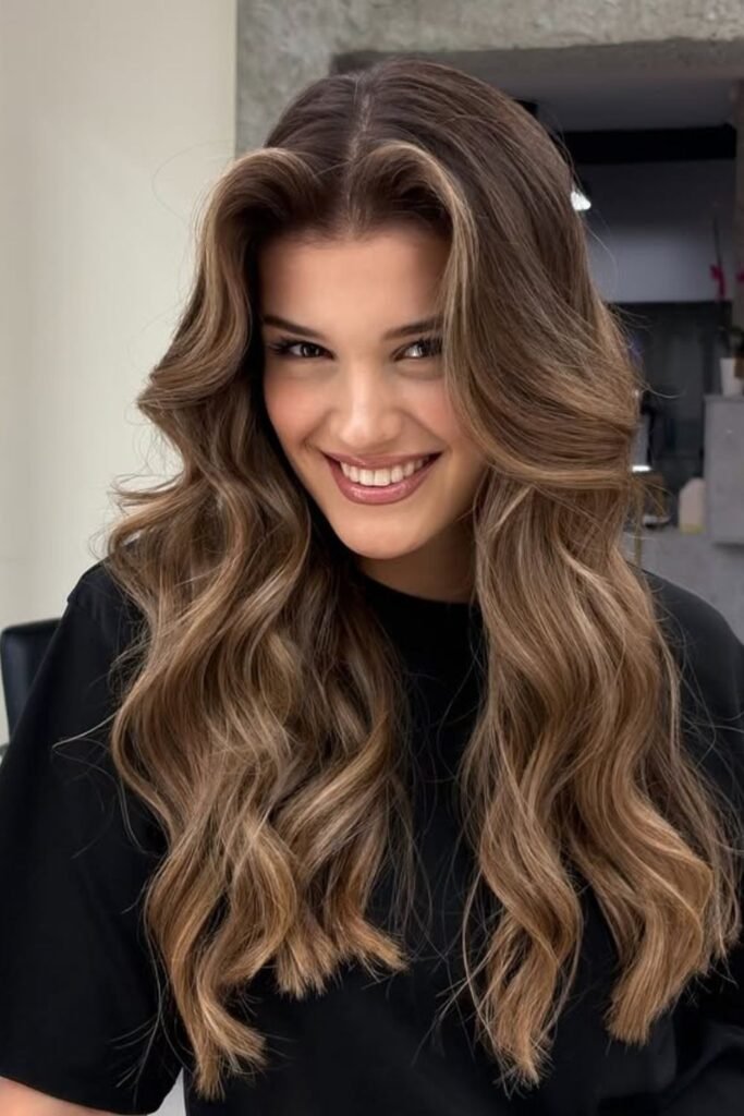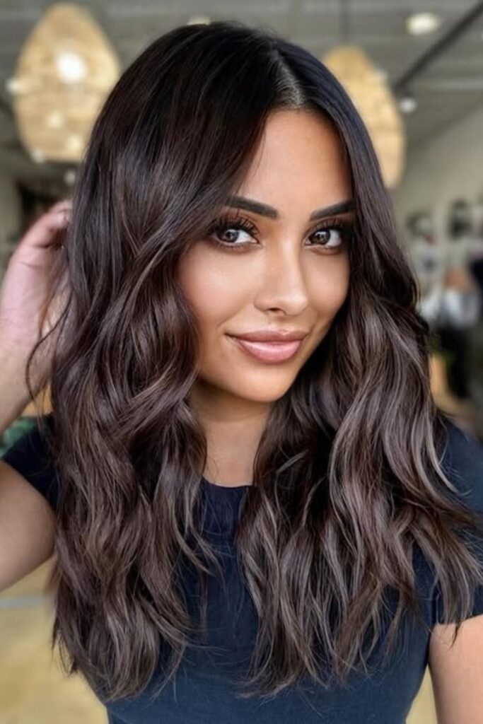 Ask for a rich mocha base with neutral brown lowlights to make it again. Soft, undone waves let the color catch the light and make it look more expensive instead than flat.