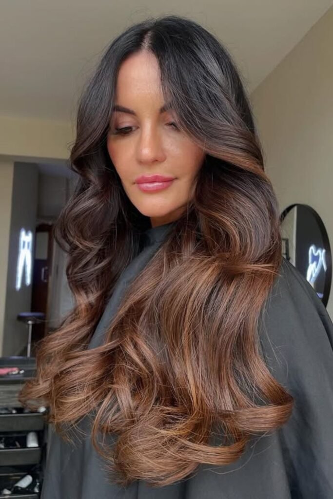 Copper mocha adds a warm, glowing lift that instantly brightens deeper brunettes without going fully red.