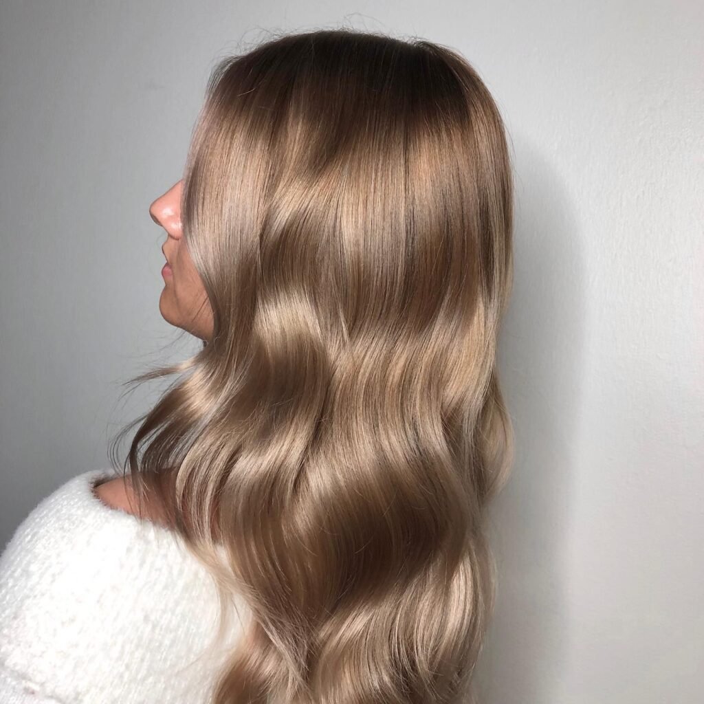 These deep mushroom blonde waves feature a brown undertone for a rich, earthy effect. Use L’Oreal Majirel 6.1 for the base, adding a touch of Matrix SoColor 7N for a soft contrast. Complete the look with Moroccanoil Curl Defining Cream to enhance the waves while keeping them hydrated and shiny.