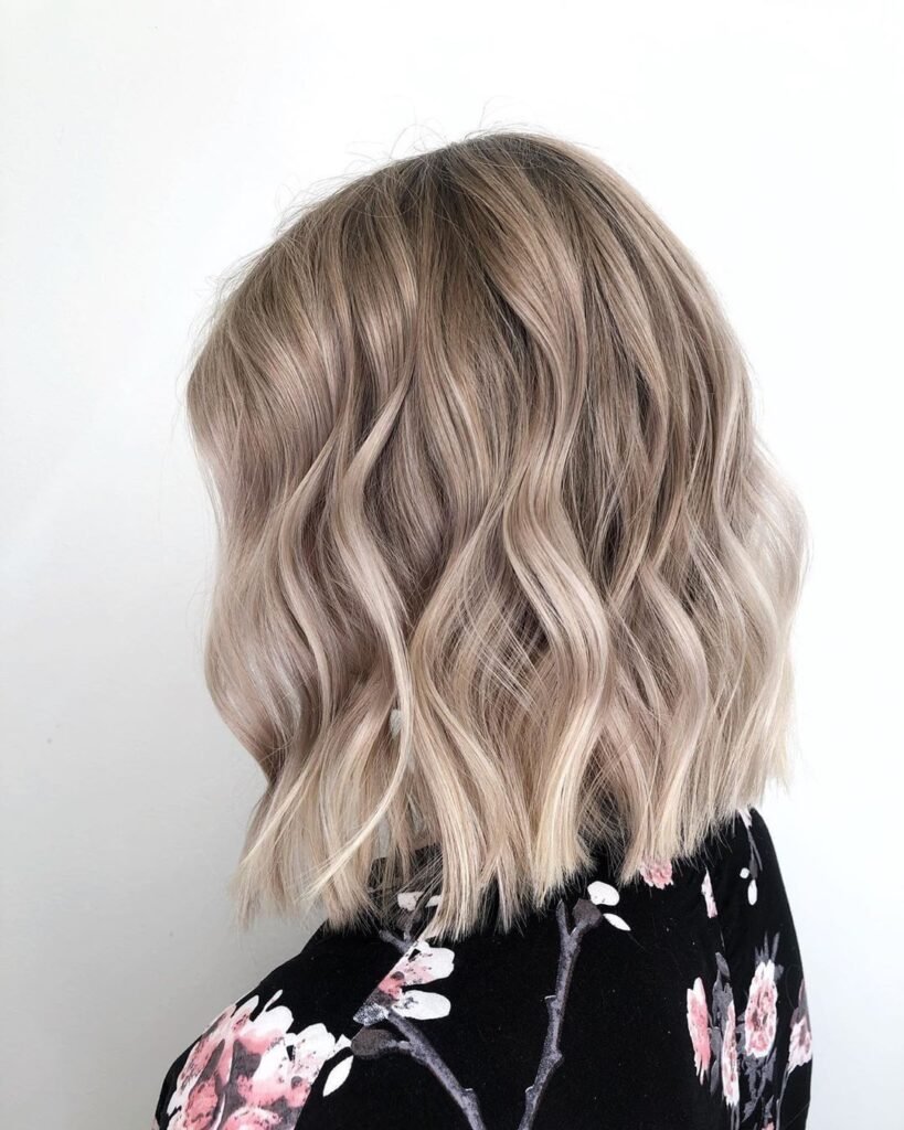 This soft bob blends cool-toned mushroom blonde with icy highlights, offering a chic and fresh finish. To achieve this, use Wella Illumina Color 8/1 Light Ash Blonde for the base and Redken Shades EQ 09V Platinum Ice for the highlights. For texture and waves, use IGK Beach Club Texture Spray to add a modern, tousled effect.