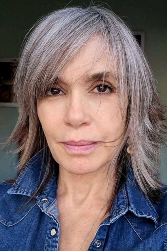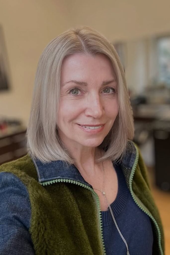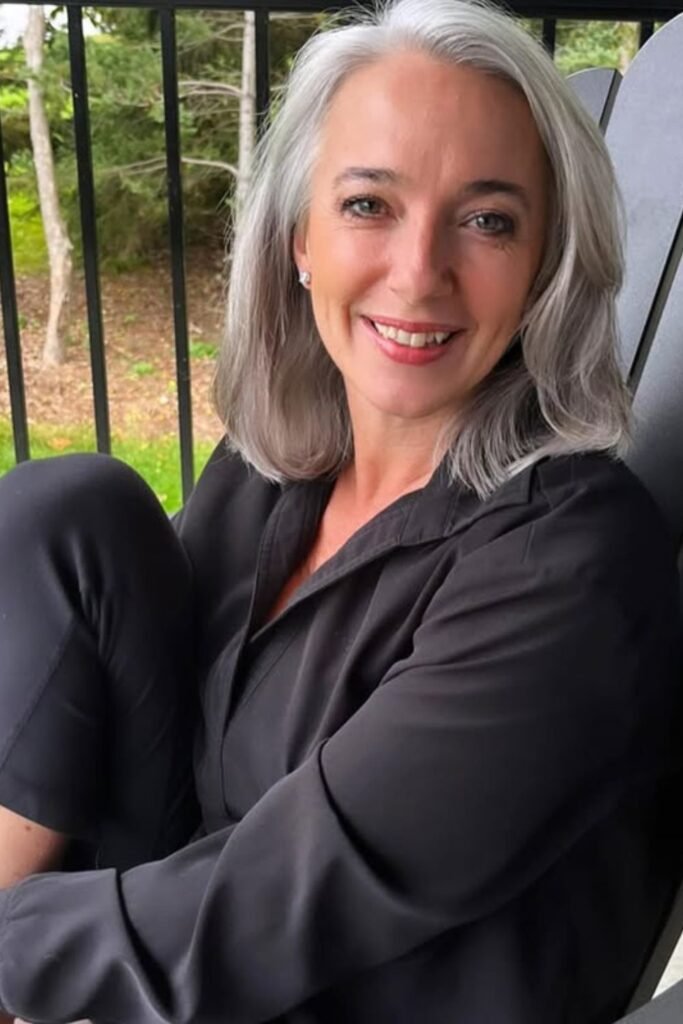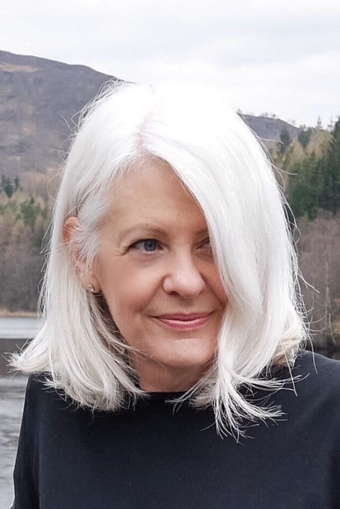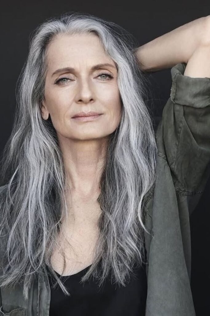 Length like this works beautifully when your hair has a mix of silver and depth because the lighter pieces fall in a soft, blended way that brightens your face.