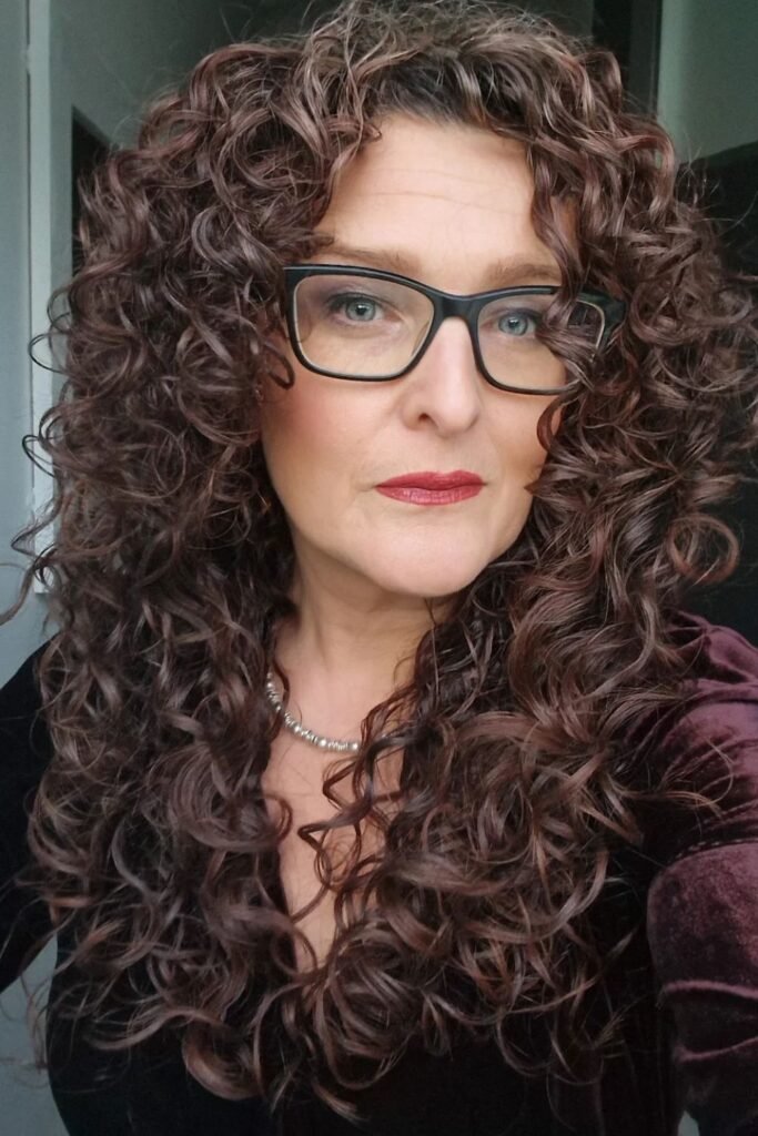 The tight ringlets softly frame the cheeks, which is great if you want volume without seeming puffy.