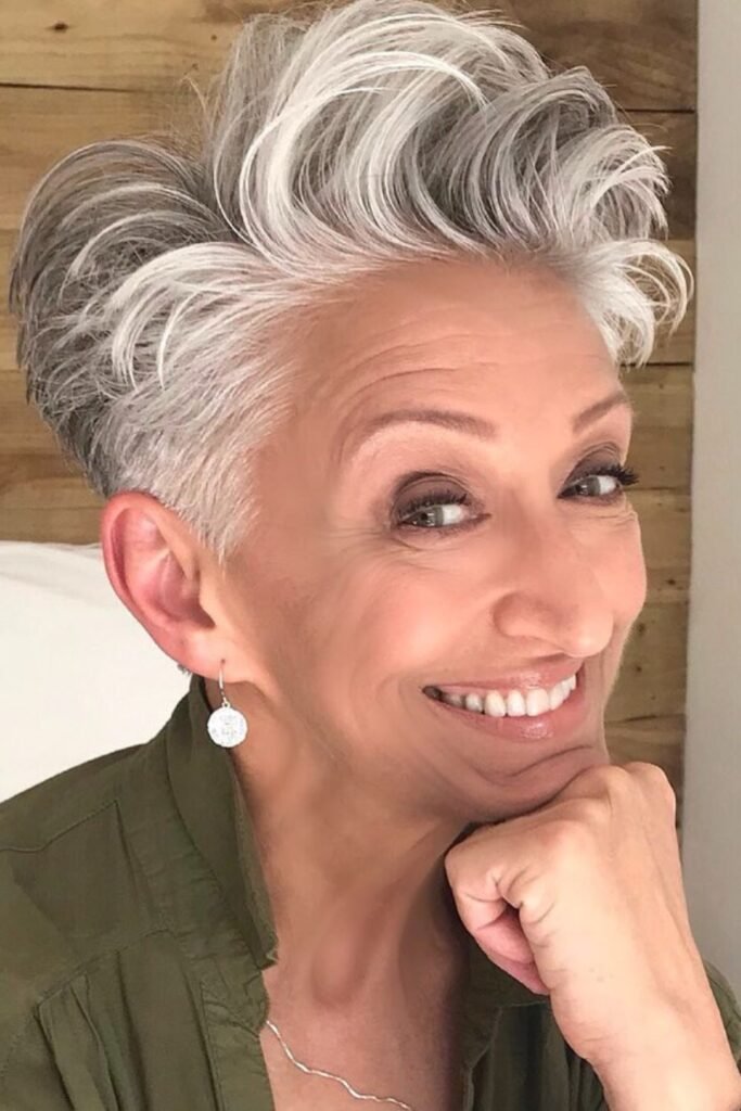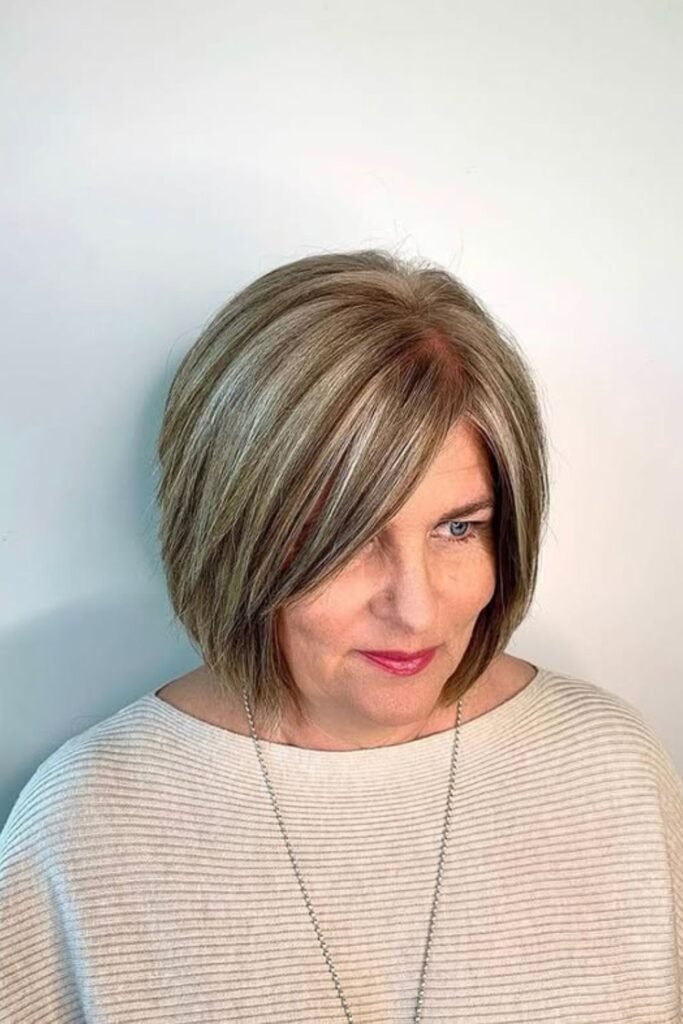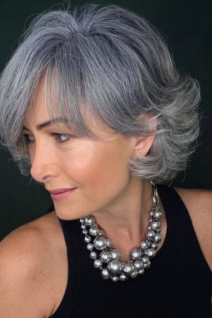 This style looks great on hair that already has silver streaks in it since the lighter sections around the face make your skin look brighter right away.