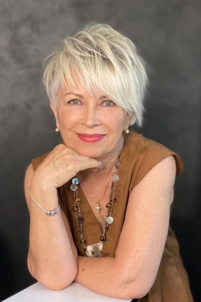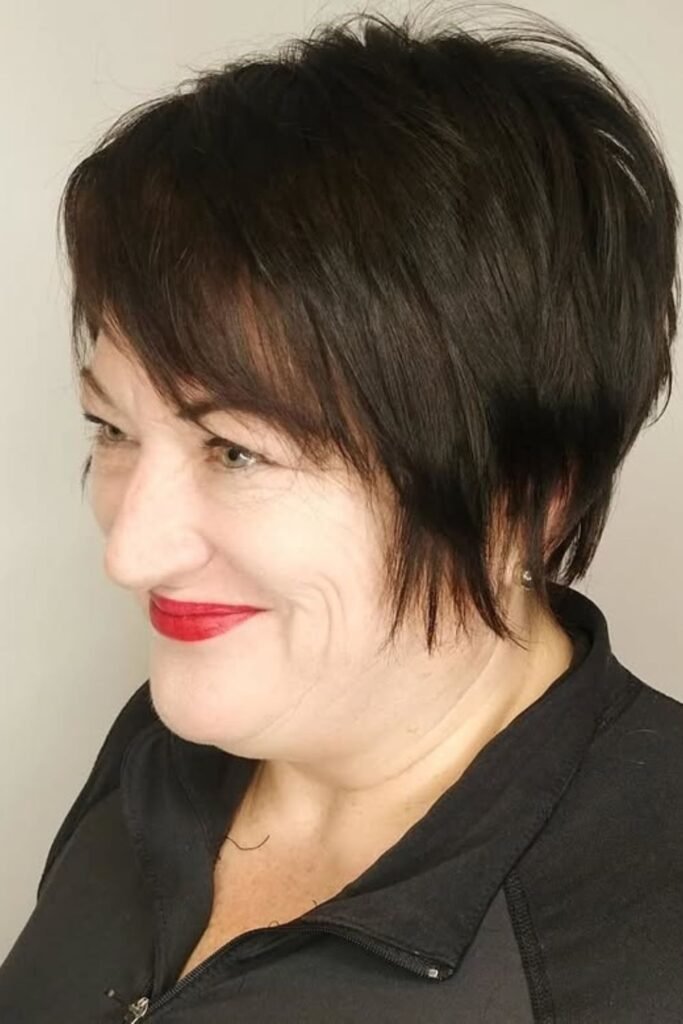 Short layers styled forward like this bring a fresh, lifted feel that suits anyone who wants a low-maintenance cut with a modern edge.