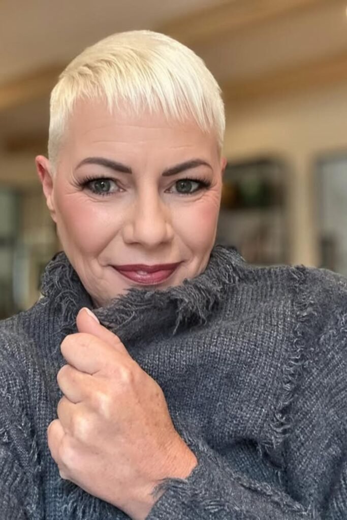 To keep the front light, ask your hairdresser for a very short crop with delicate, micro-length bangs.