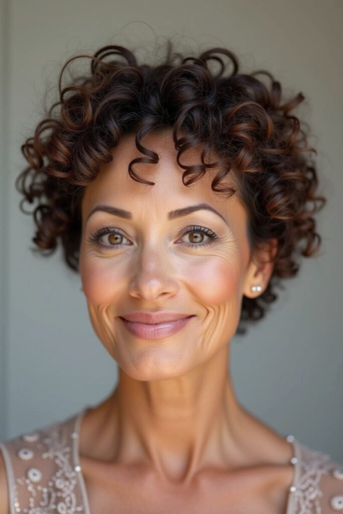 The tight ringlets softly frame the cheeks, which is great if you want volume without seeming puffy.