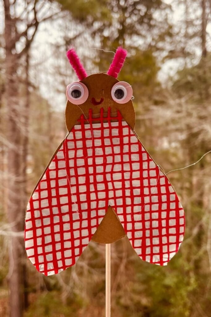 Outdoor crafts feel more real when kids can hold them up and make them move. Cutting a simple bug shape from cardboard.