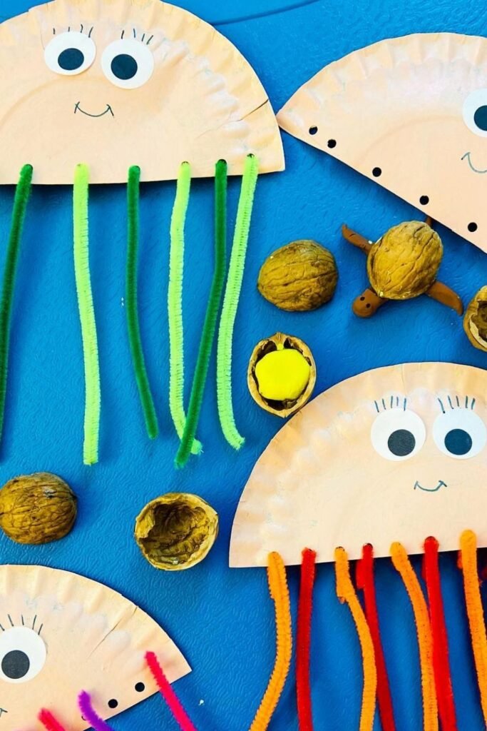 Wiggly tentacles make this one instantly fun. Poking holes into paper plates and pulling pipe cleaners through keeps kids focused and calm.