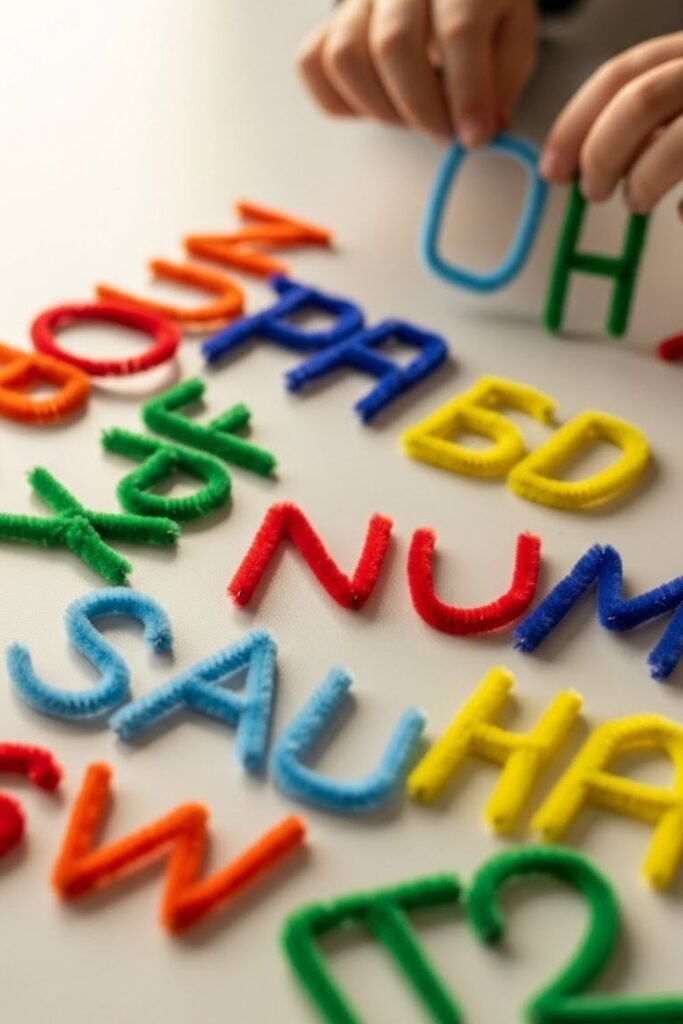 Letters feel different when kids build them instead of writing them. Shaping pipe cleaners into names works well.