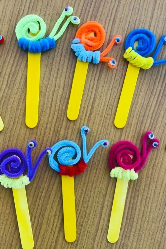 Slow moving creatures make great practice for twisting and looping. Wrapping pipe cleaners into spiral snail shells helps kids learn control without rushing.