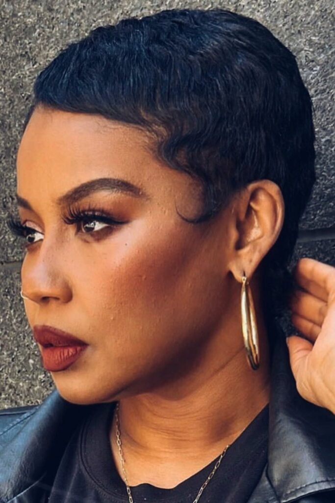 It expands your face, accentuates your cheekbones, and complements natural texture well. A pixie makes life easier if you want a new style.