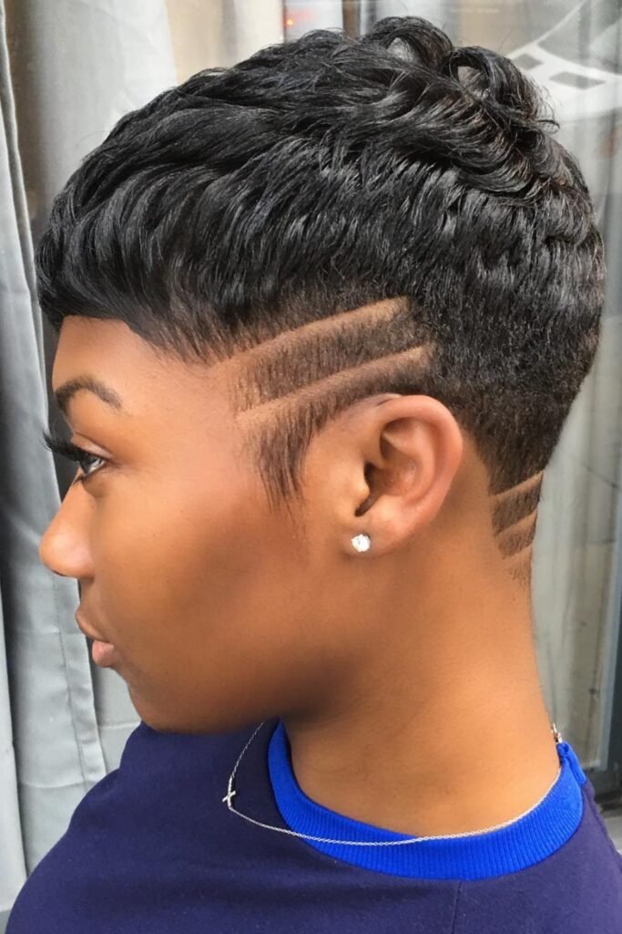 You want your hair to stand out, this stacked wave design offers your pixie a striking, appearance.