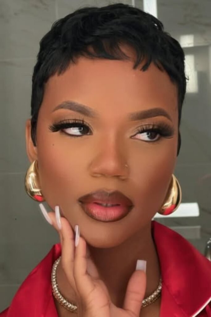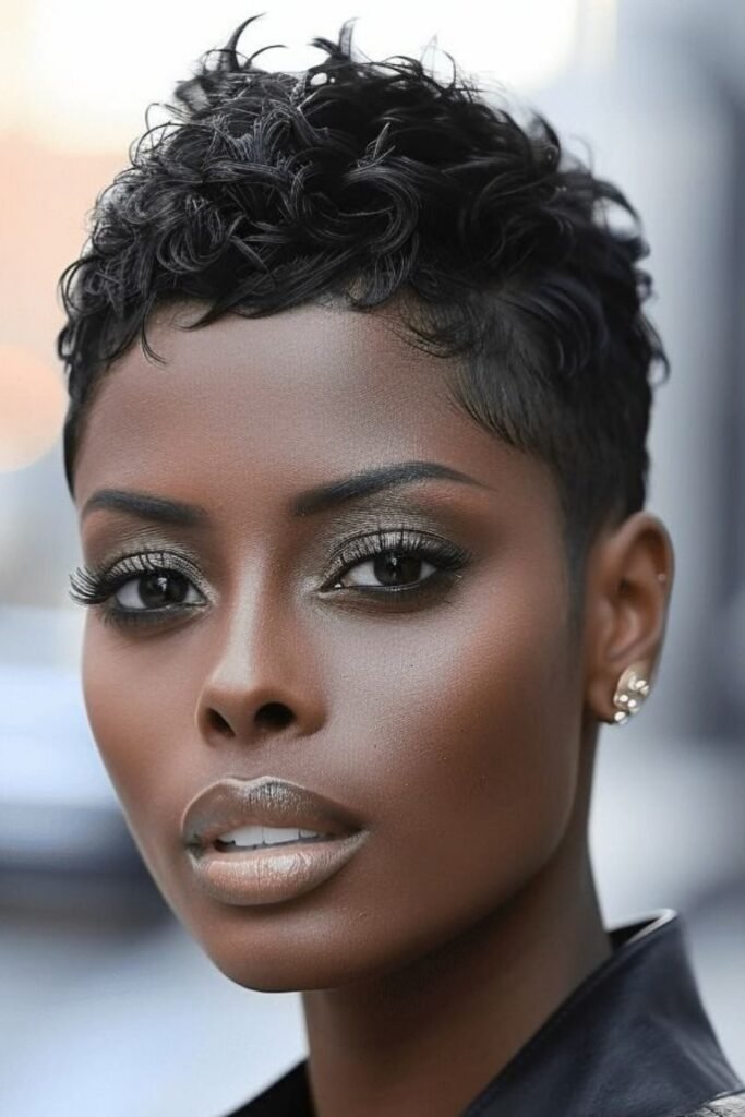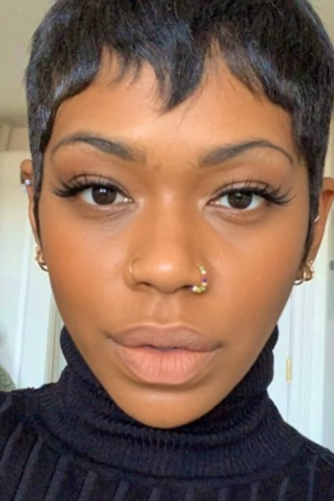 A pixie cut provides you a simple, low-maintenance look that accentuates your features right away.
