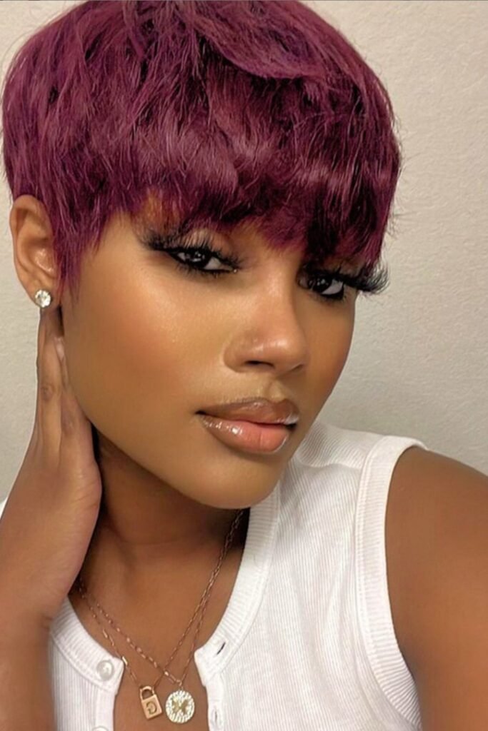 This rich purple pixie keeps the shape delicate and feminine, adding a dramatic, twist to your appearance.