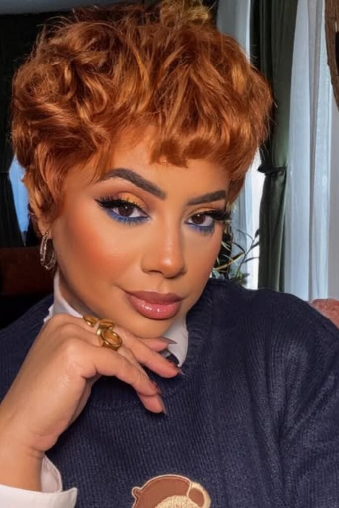 These fluffy copper curls give your pixie a bouncy, elevated shape. They also instantly add warmth.
