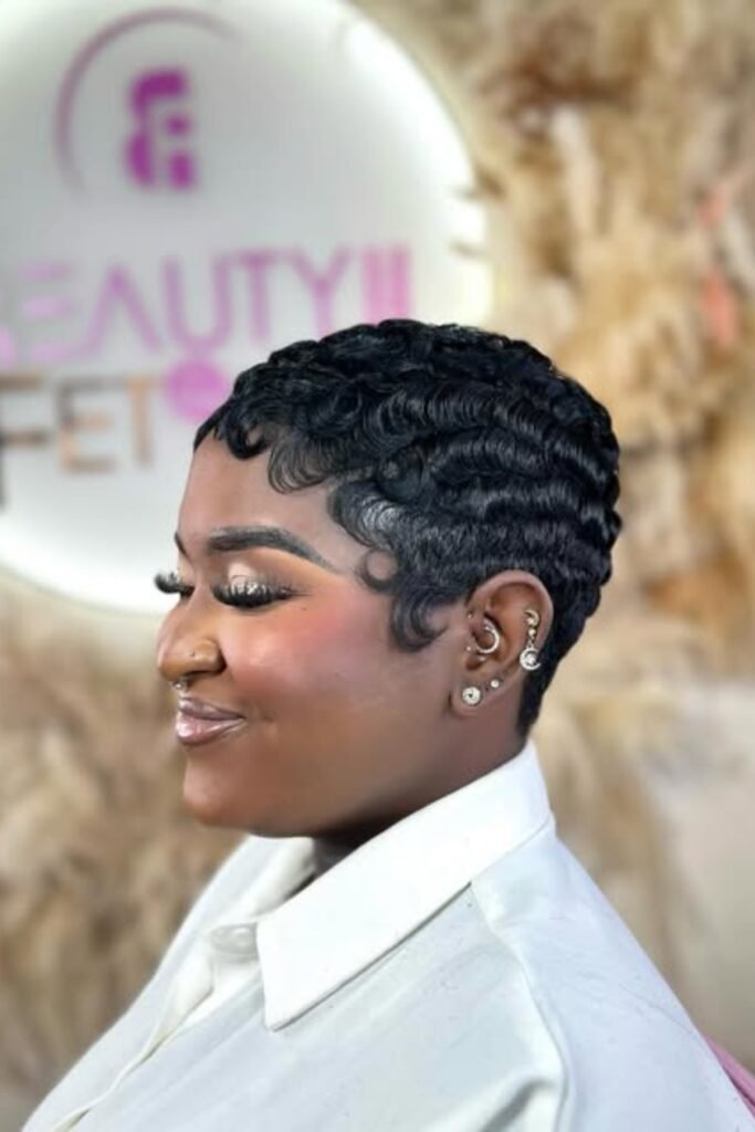 These deep, sculpted waves give your pixie a smooth, salon-fresh look, best for formal events look.