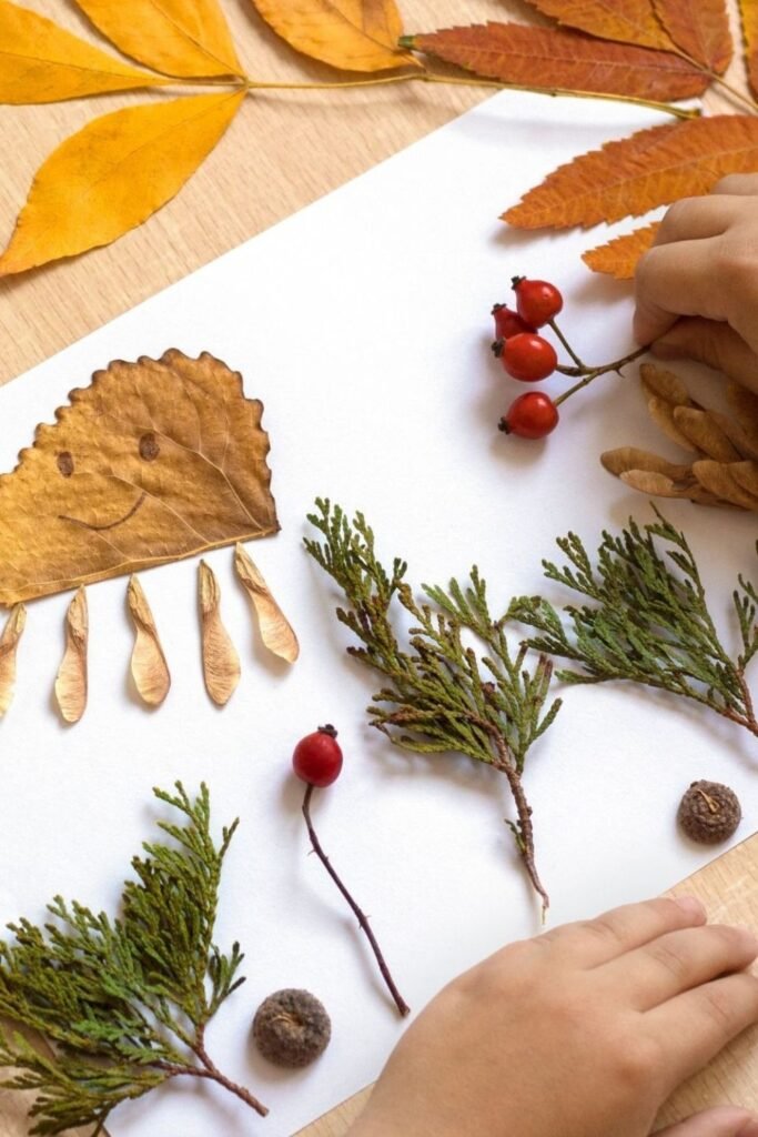 Fresh air turns into quiet focus once those little treasures hit the table. Leaves, twigs, berries, and seed pods.