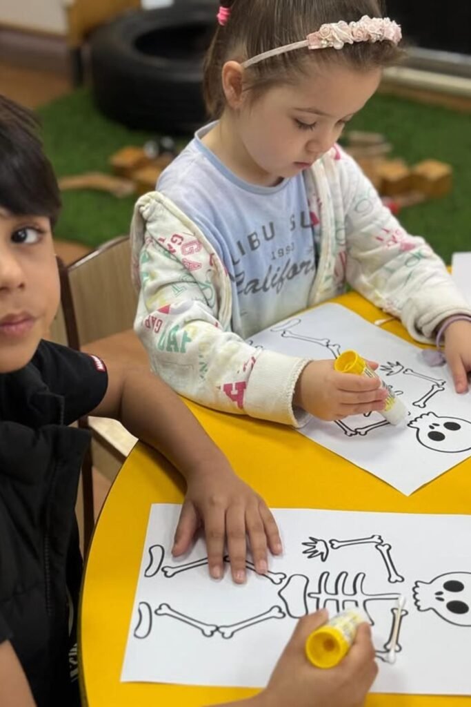 Precision changes the mood instantly. Hand over a glue stick and a bold outline—like a skeleton, animal.