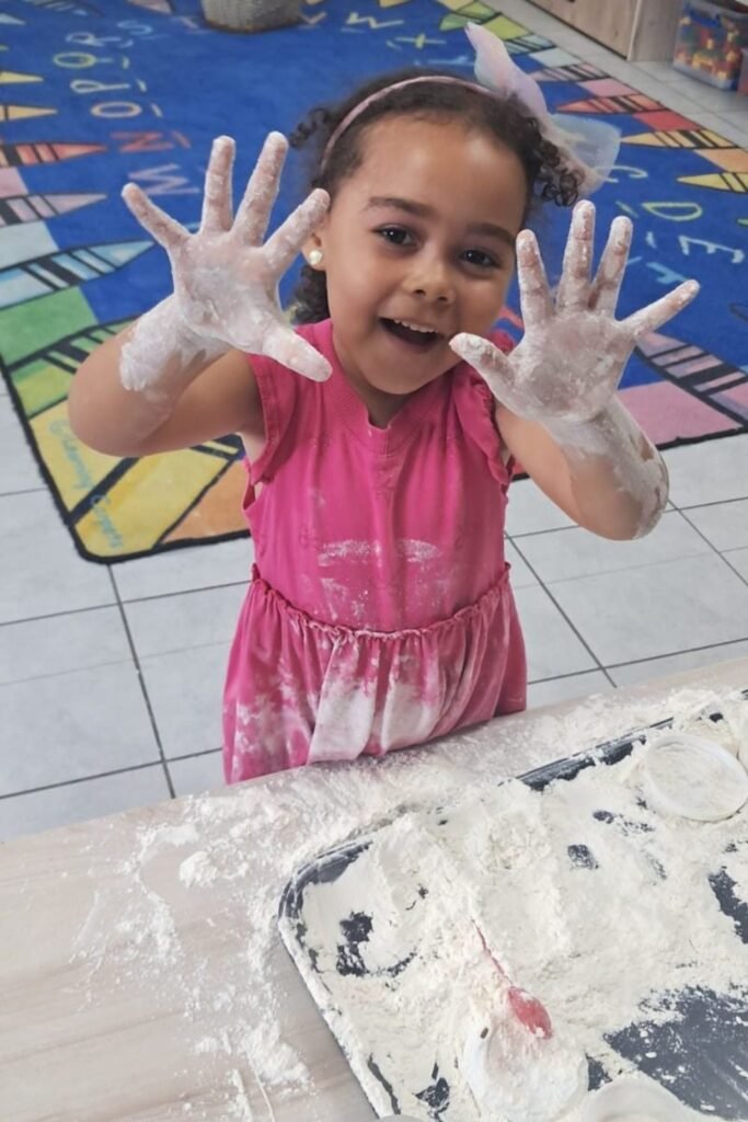 As the room settles on its own. Add a simple cookie cutter or plastic cup and let them focus on forming one clean shape at a time.