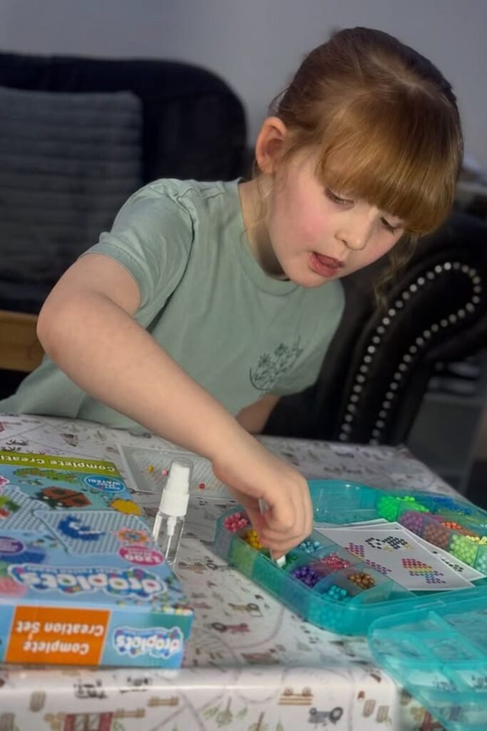 Tiny beads demand big focus. Spread out a tray with sorted colors and a simple pattern card and watch how quickly chatter fades.