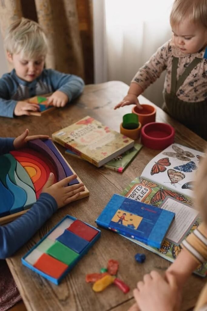 Color draws focus faster than instructions ever could. And Lay out a wooden rainbow stacker on table, watch and how quickly little hands settle into the place.