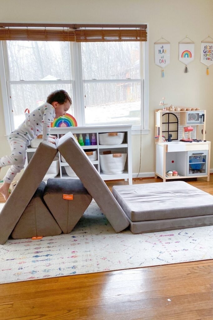 And little climbing challenges that the second pair of footwear steps on. Let toddlers crawl over, slide down slowly, or act like they’re crossing a bridge in the jungle.