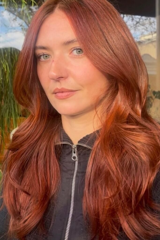 Sunlit copper like this thrives on fair and warm undertones because the brightness lifts the whole face instantly.