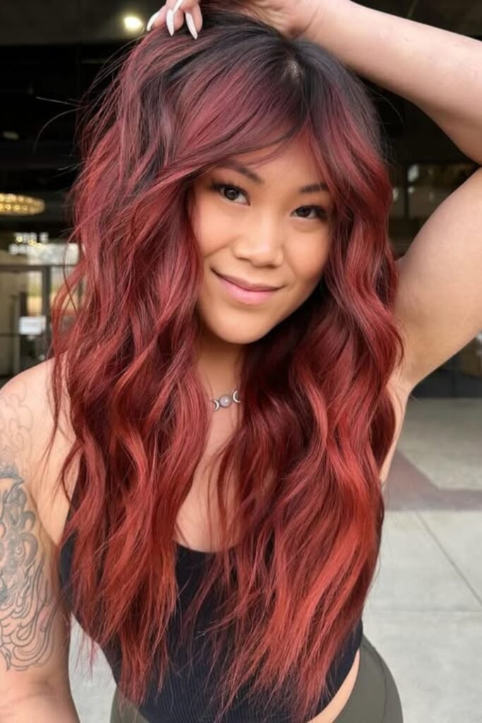 Vibrancy takes over here with a crimson-leaning copper that builds intensity from root to tip.