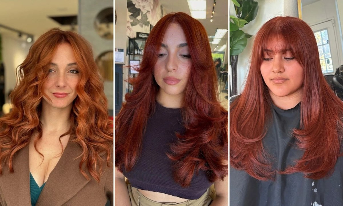 Fiery copper like this turns heads instantly, especially when paired with full, soft bangs that frame the face.